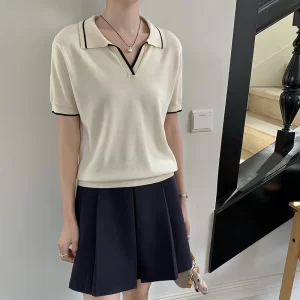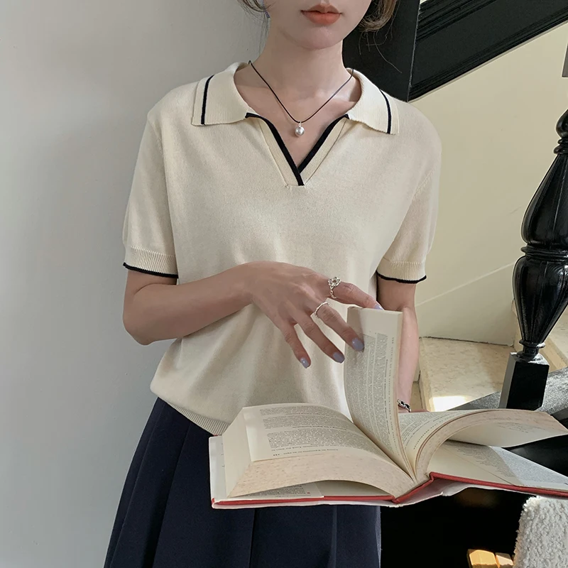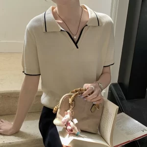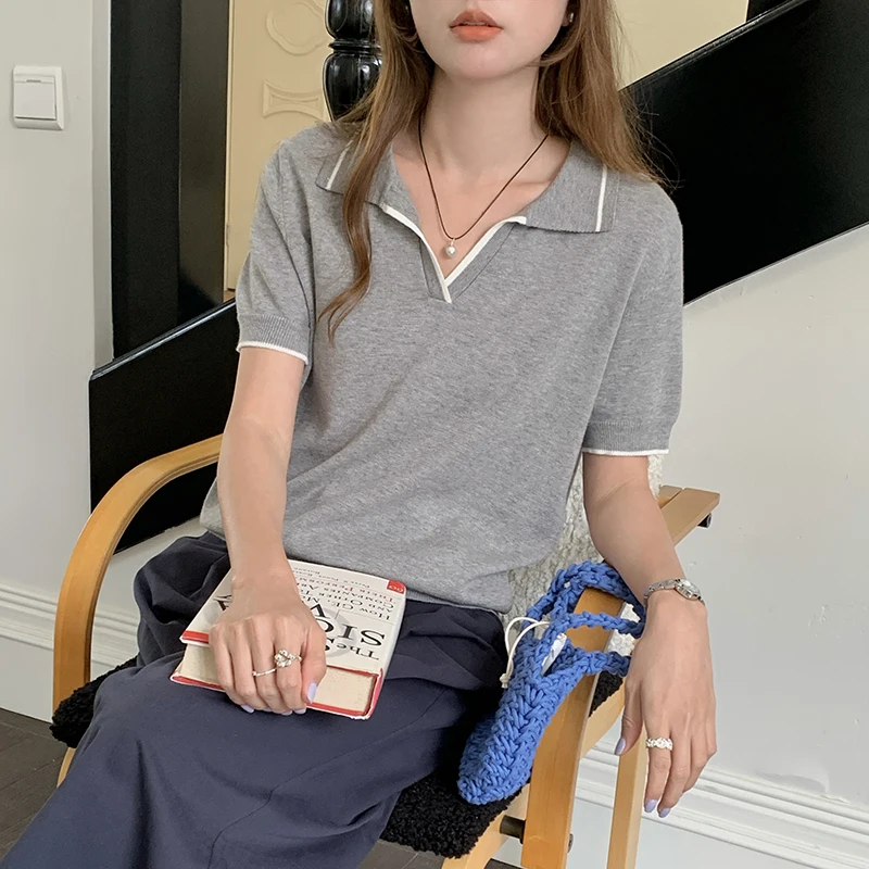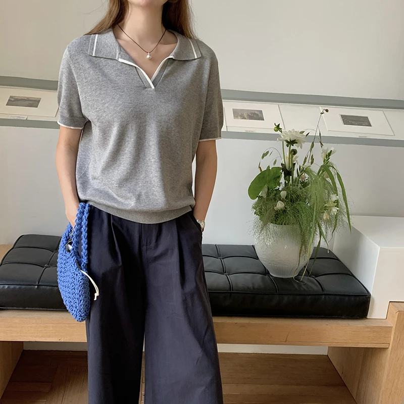 100% sweater fashion short women’s pullover sweater T-shirt short sleeve knitted thin women’s V-neck sweater new