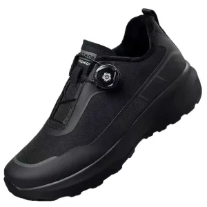 Mens Slip Resistant Running Shoes Black Thick Sole with Rotating Button Casual Sneakers for Outdoor Sports Commuting