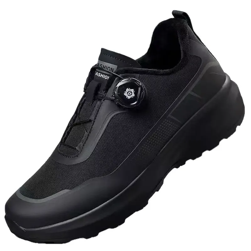 Mens Slip Resistant Running Shoes Black Thick Sole with Rotating Button Casual Sneakers for Outdoor Sports Commuting quantity